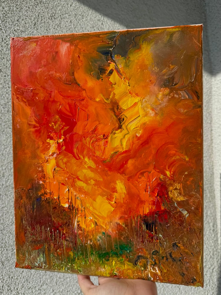 “Fire And Ash” oil painting on canvas 11 x 16 inches