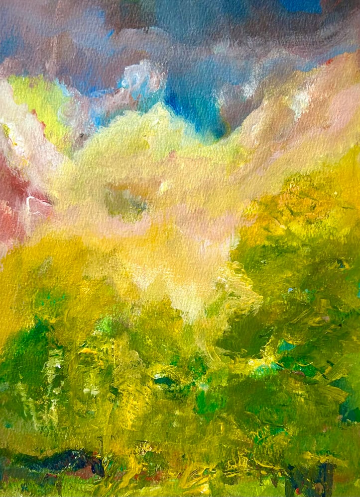 “Golden Hour Rainbow” acrylic on paper 9 x 12 inches